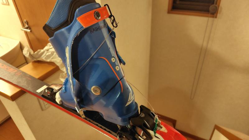 これをスキーブーツとスキー板の金具へ付けます。
