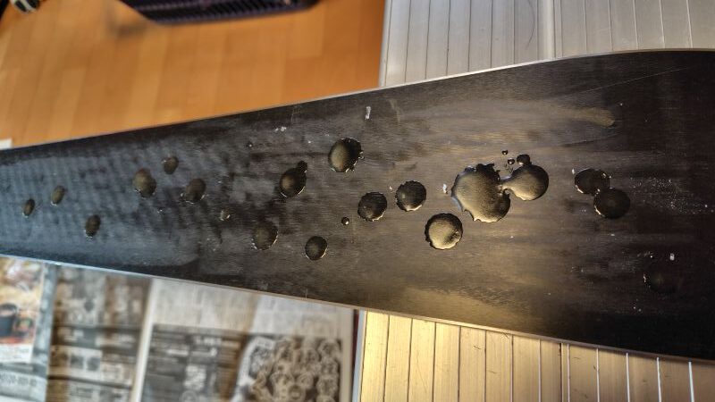 画像を撮影するのを忘れてしまいましたが、リムーバーを使うと、滑走面がカサカサになった感じになります。
