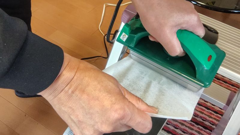 そして、ワクシングペーパーの上からアイロンを滑走面に押し当てる。